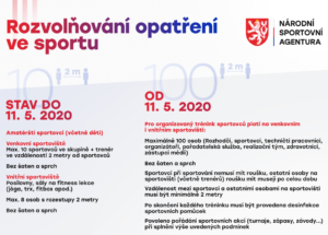 Ve čtvrtek 30. dubna schválila Vláda ČR pravidla pro další fázi rozvolňování mimořádných opatření, která má nastat od 11. května 2020. Do této fáze spadá také otevření všech vnitřních sportovišť, pořádání akcí až pro 100 osob a také organizovaný trénink sportovců na venkovním i vnitřním sportovišti za dodržení specifických podmínek.